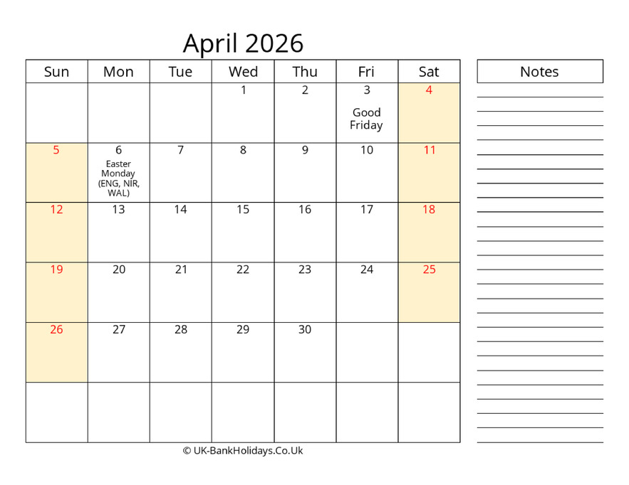 Your are downloading April 2026 Uk Calendar That Work from website UK Bank Holidays. Please select a format (.docx or pdf) you like to download and print!