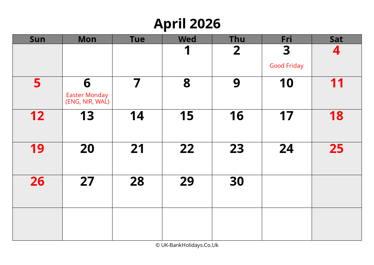 Your are downloading April 2026 Word Uk Calendar from website UK Bank Holidays. Please select a format (.docx or pdf) you like to download and print!