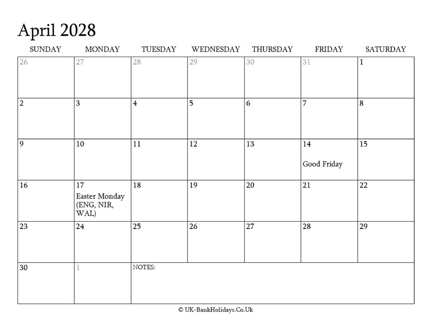 Download April 2028 Editable Uk Calendar With with Holidays