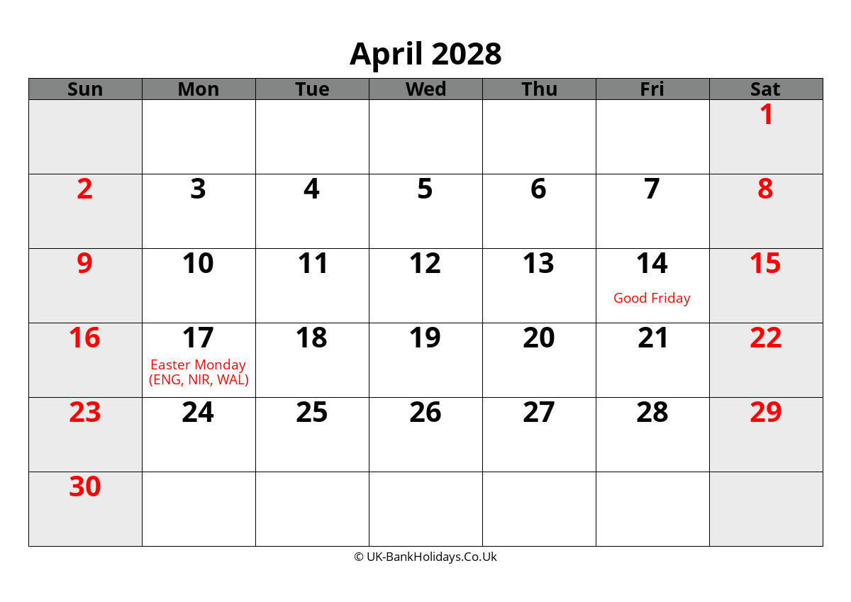 Download April 2028 Word Uk Calendar