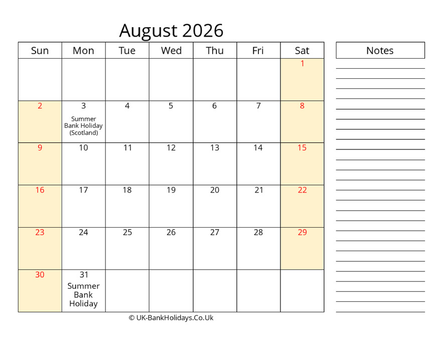 Your are downloading August 2026 Uk Calendar That Work from website UK Bank Holidays. Please select a format (.docx or pdf) you like to download and print!