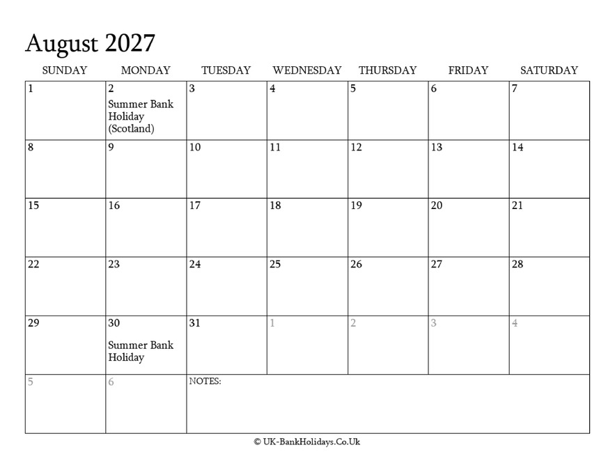 Your are downloading August 2027 Editable Uk Calendar With with Holidays from website UK Bank Holidays. Please select a format (.docx or pdf) you like to download and print!