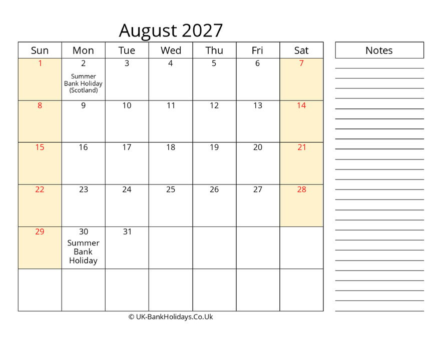 Download August 2027 Uk Calendar That Work