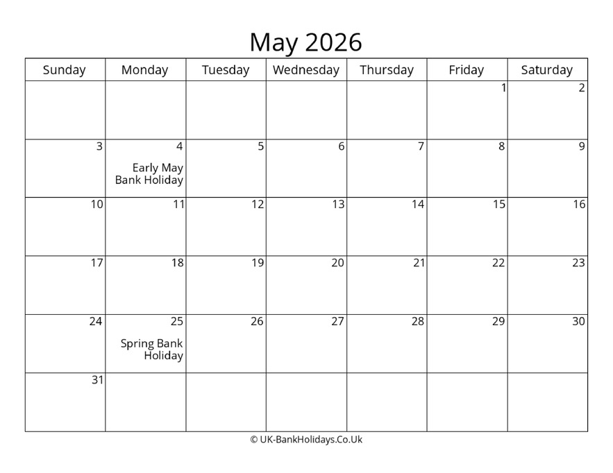 Download Blank Uk Calendar May 2026