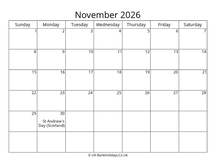 Download Blank Uk Calendar November 2026