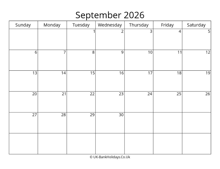 Download Blank Uk Calendar September 2026