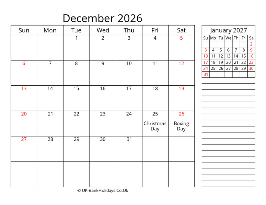 Download December 2026 Uk Calendar Template