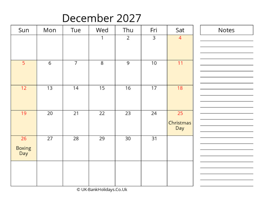 Your are downloading December 2027 Uk Calendar That Work from website UK Bank Holidays. Please select a format (.docx or pdf) you like to download and print!
