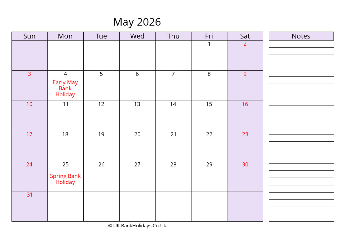 Your are downloading Free Printable May 2026 Uk Calendar from website UK Bank Holidays. Please select a format (.docx or pdf) you like to download and print!