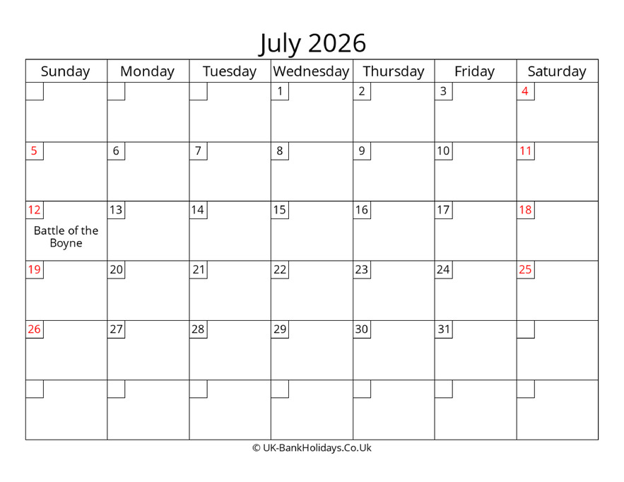 Your are downloading Free Printable Uk Calendar July 2026 from website UK Bank Holidays. Please select a format (.docx or pdf) you like to download and print!