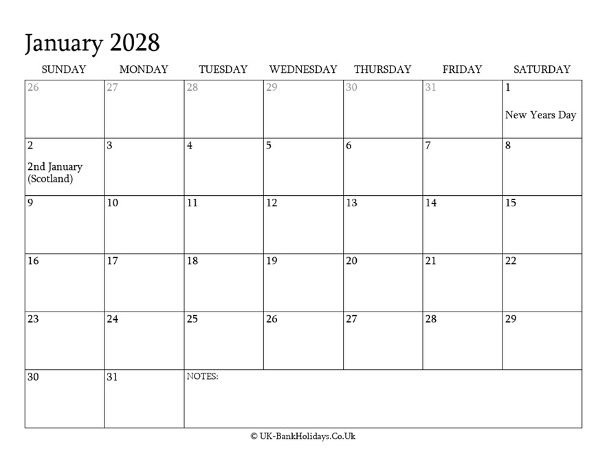 Download January 2028 Editable Uk Calendar With with Holidays