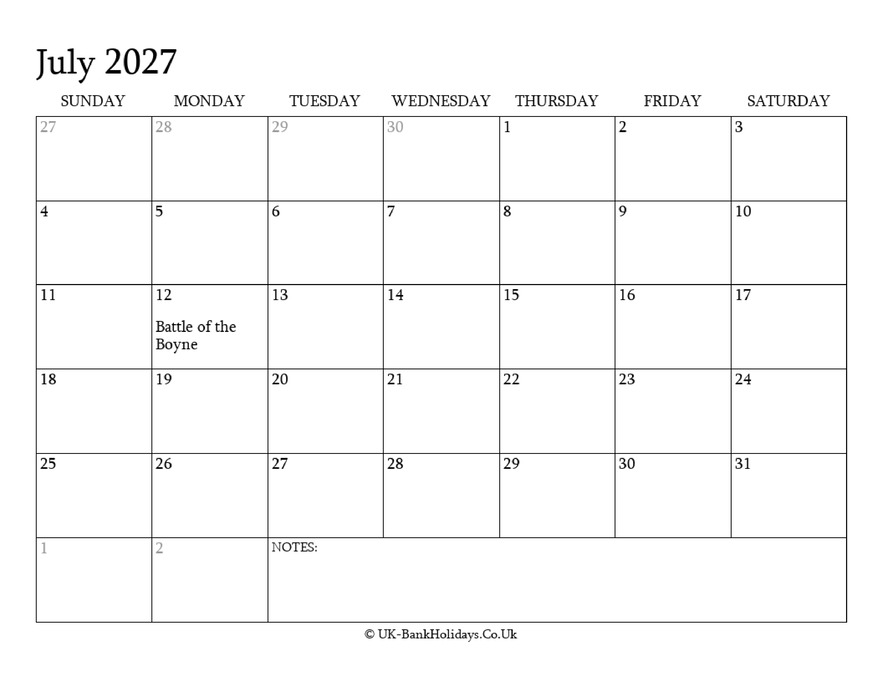 Download July 2027 Editable Uk Calendar With with Holidays