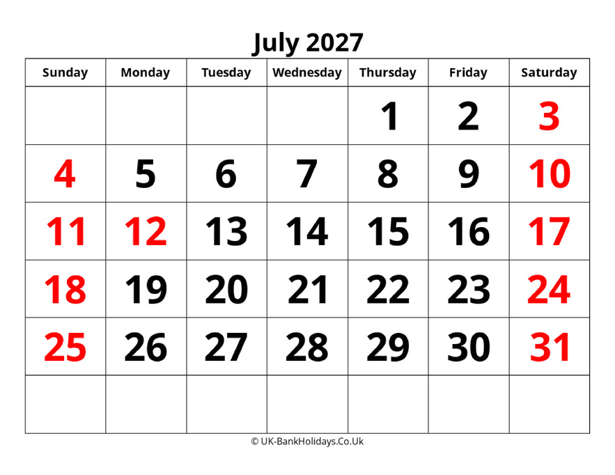 Your are downloading July 2027 Pdf Uk Calendar from website UK Bank Holidays. Please select a format (.docx or pdf) you like to download and print!