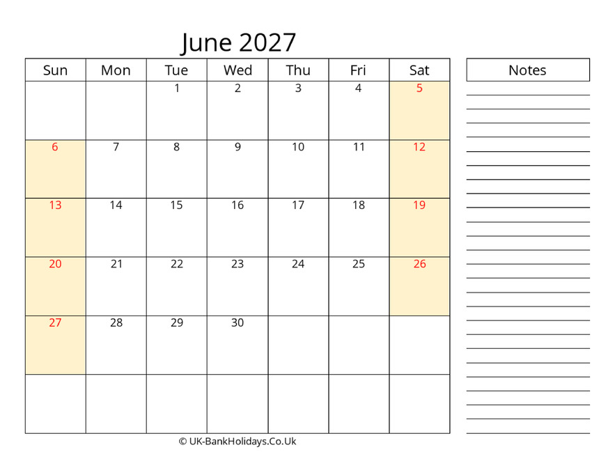 Your are downloading June 2027 Uk Calendar That Work from website UK Bank Holidays. Please select a format (.docx or pdf) you like to download and print!