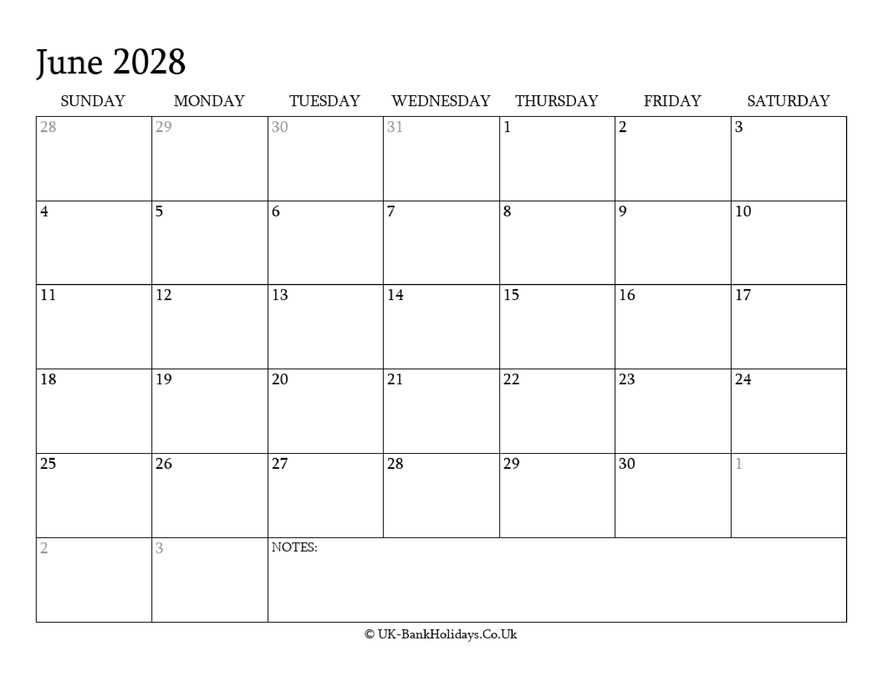 Your are downloading June 2028 Editable Uk Calendar With with Holidays from website UK Bank Holidays. Please select a format (.docx or pdf) you like to download and print!