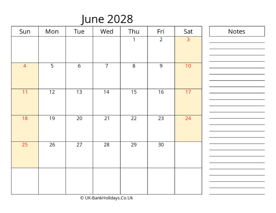 Your are downloading June 2028 Uk Calendar That Work from website UK Bank Holidays. Please select a format (.docx or pdf) you like to download and print!