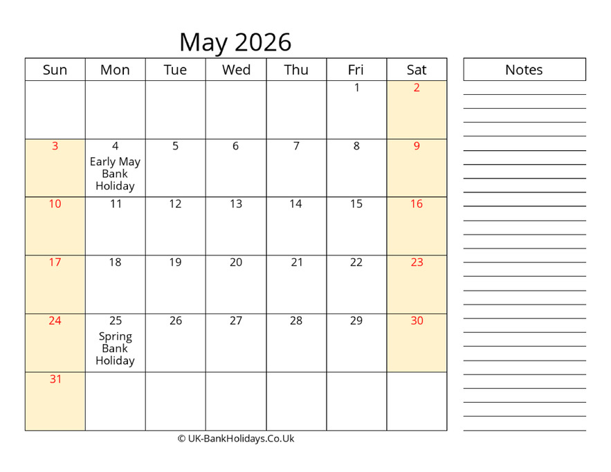 Your are downloading May 2026 Uk Calendar That Work from website UK Bank Holidays. Please select a format (.docx or pdf) you like to download and print!