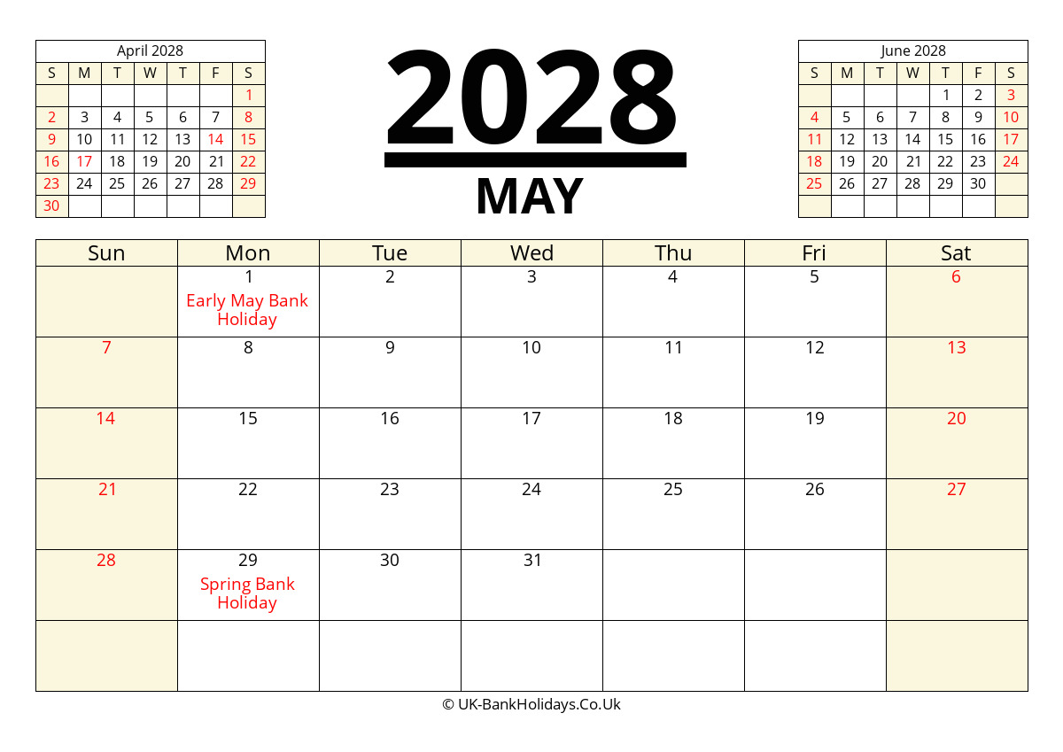 Download May 2028 Printable Uk Calendar