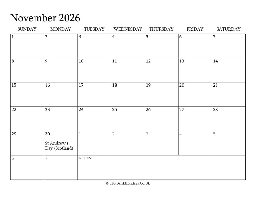 Your are downloading November 2026 Editable Uk Calendar With with Holidays from website UK Bank Holidays. Please select a format (.docx or pdf) you like to download and print!