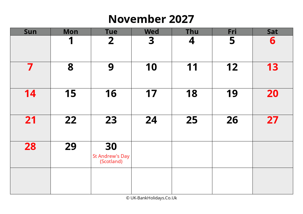 Your are downloading November 2027 Word Uk Calendar from website UK Bank Holidays. Please select a format (.docx or pdf) you like to download and print!