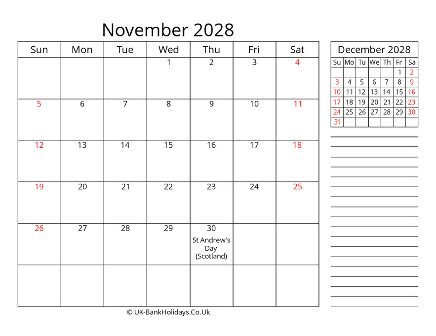 Download November 2028 Uk Calendar Template
