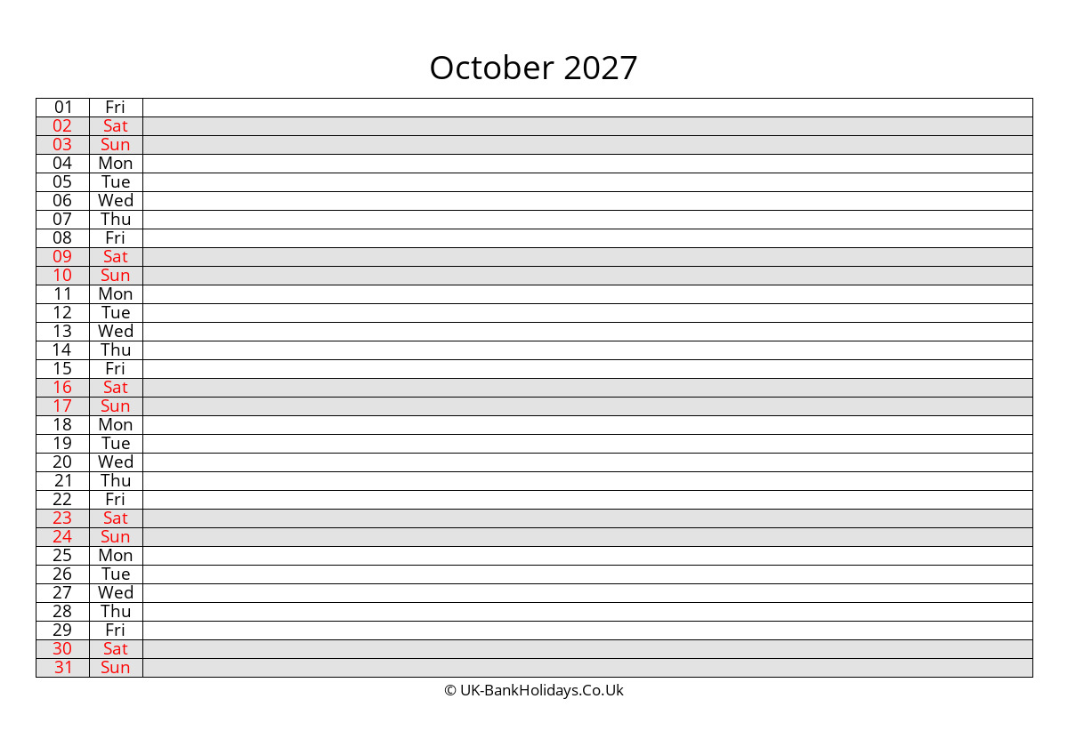 Download October 2027 Monthly Uk Calendar Free