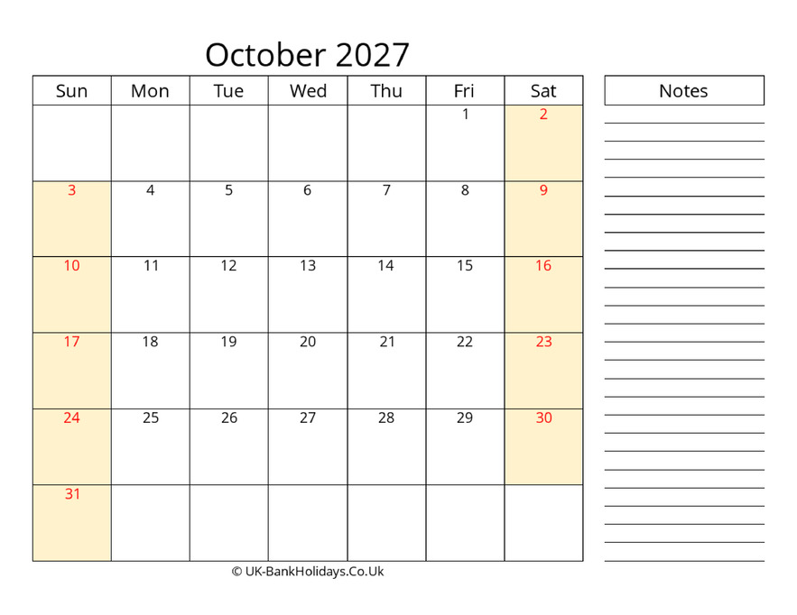 Your are downloading October 2027 Uk Calendar That Work from website UK Bank Holidays. Please select a format (.docx or pdf) you like to download and print!