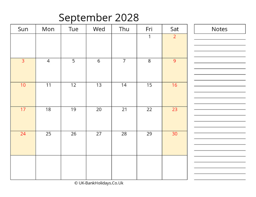 Your are downloading September 2028 Uk Calendar That Work from website UK Bank Holidays. Please select a format (.docx or pdf) you like to download and print!