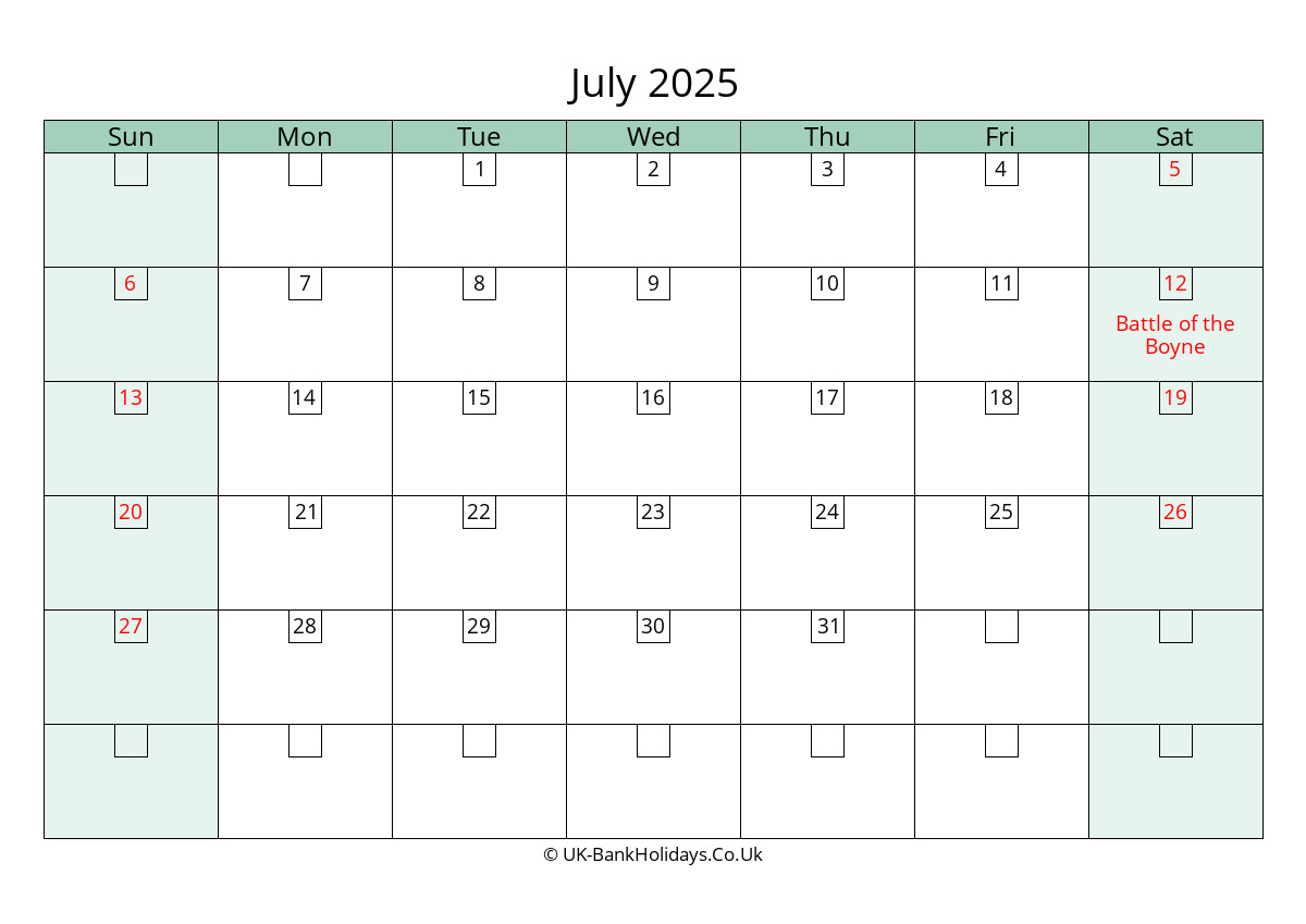 This is July 2025 Calendar Printable with Bank Holidays UK. This monthly calendar come with two version: PDF and PNG. Check the review and download to print your July Calendar now!